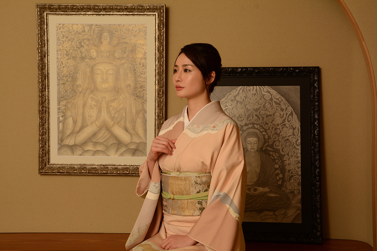 ある時、私のルーツである沖縄で神人(かみんちゅ)に導かれるようにして出会い、「自分の解放」をするために仏画を描くように教えを受けました。このきっかけが私の絵を描くことが天命に変わった瞬間です。